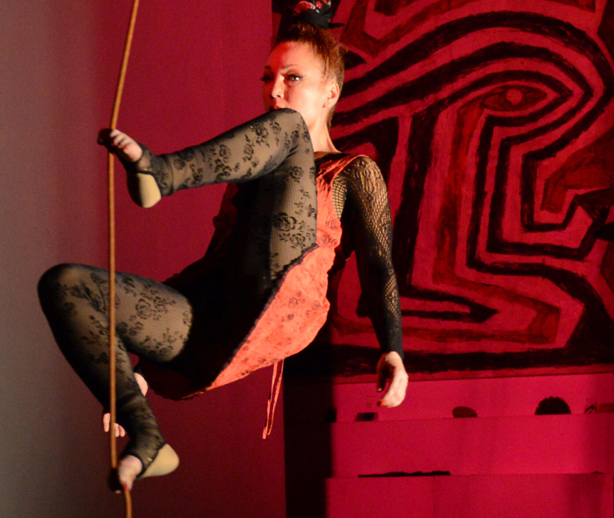 El CIRCO CONTEMPORÁNEO – malabares, manipulación de objetos, cuerda lisa y suspensión capilar – introduce el riesgo real como dimensión poética. No se presenta como demostración técnica, sino como lenguaje que amplifica la fragilidad, el desequilibrio y la exposición del intérprete.